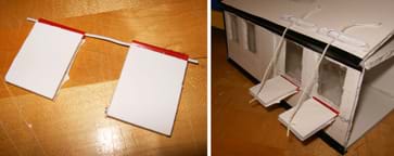 - Glue paperclips to the roof, directly above each light shelf/window. Attach a piece of string to each shelf that is long enough to extend beyond the roof paperclips; this permits adjustment of the shelf angle by tightening or loosening the string (see Figure 5).