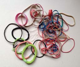 - assortment of various elastic rubber bands, such as rubber bands of different sizes and materials, elastic hair bands, hair scrunchies, etc.