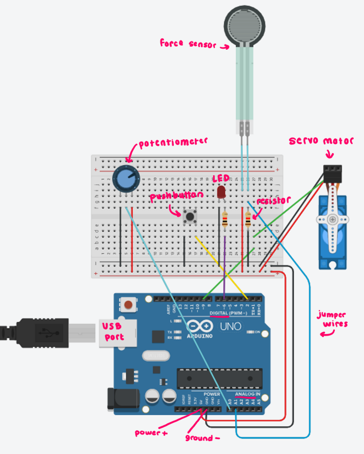 - Use both the FSR sensor and servo for a fully functional feedback loop.