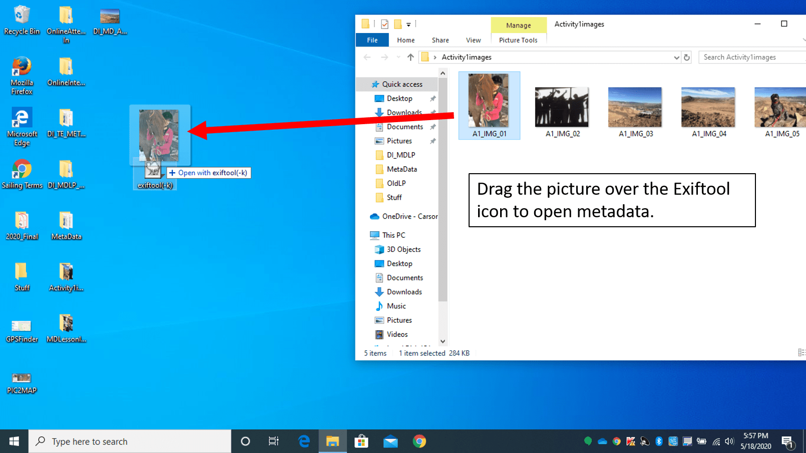 - Have each student verify that the computer has the EXIFTOOL on the desktop.