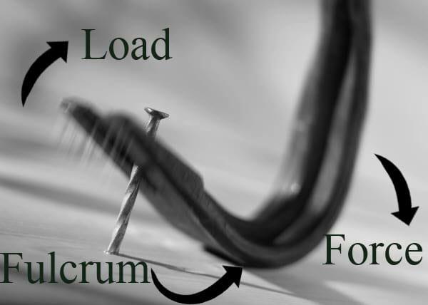 Everyday examples of levers include a teeter-totter or see-saw, crane arm, crow bar, hammer (using the claw end), fishing pole and bottle opener. Think of a how you use a crowbar (see Figure 2). By pushing down on the long end of the crowbar, a force is created at the load end over a smaller distance, once again, demonstrating the tradeoff between force and distance.